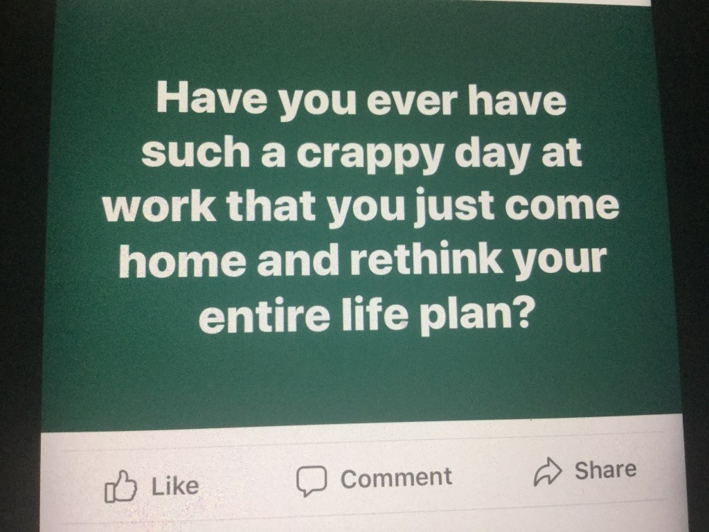 Tonight, I came home from work, having experienced what was a bad day to a totally unproductive week. On my Facebook page, I posted the following: