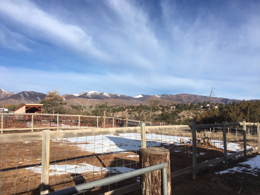 The mountains above Los Alamos are covered in snow, as is most of the Jemez and Sangre De Cristo Mountains this time of year.