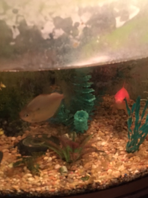 The aquarium at the house with the final two fish, both whom are 5 years old.